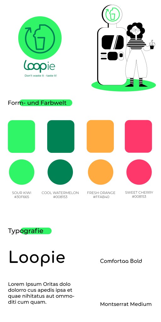 Mithilfe von Loopie kann so der enormen Lebensmittelverschwendung in Supermärkten entgegengewirkt werden und dem User ein personalisierter Smoothie serviert werden.