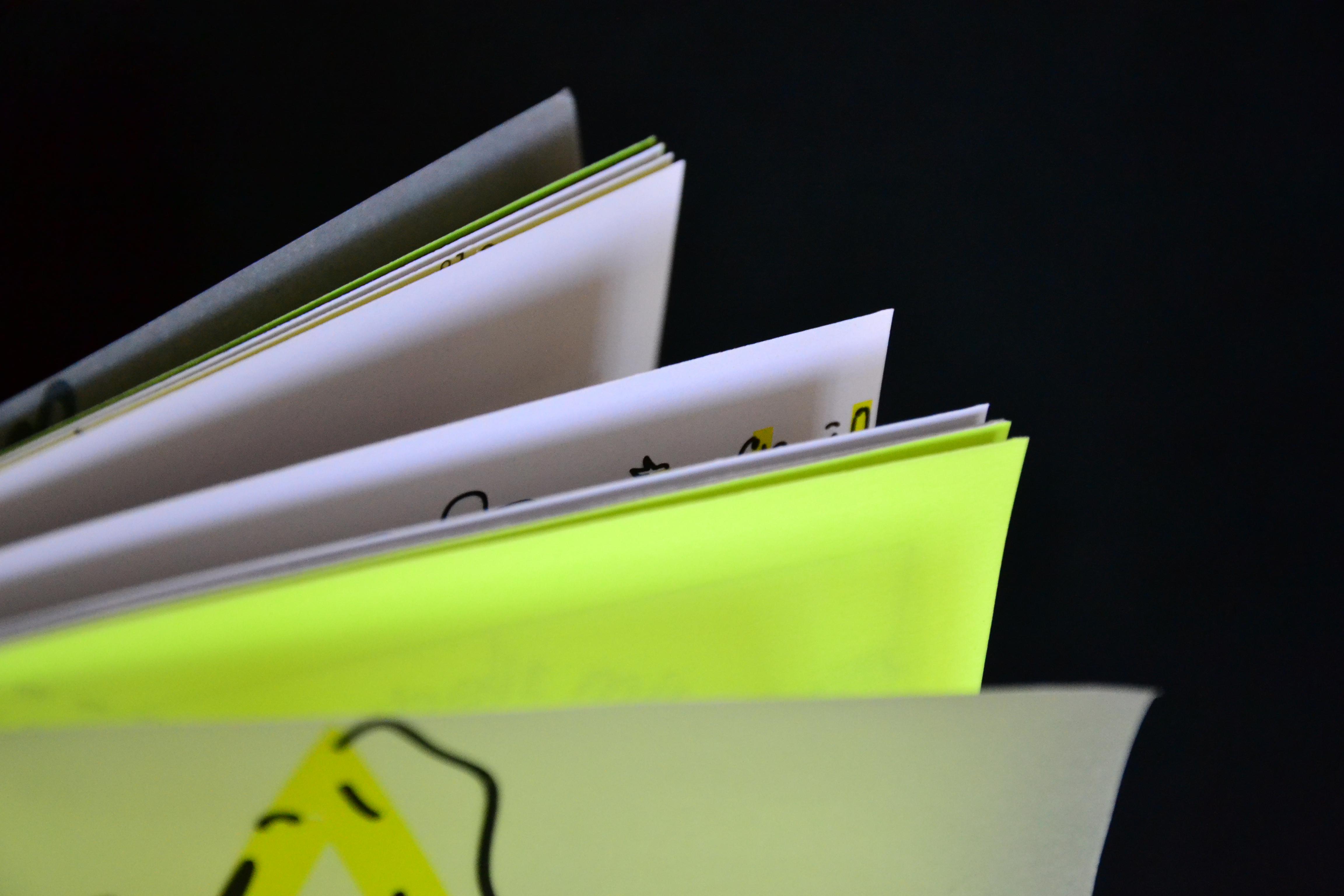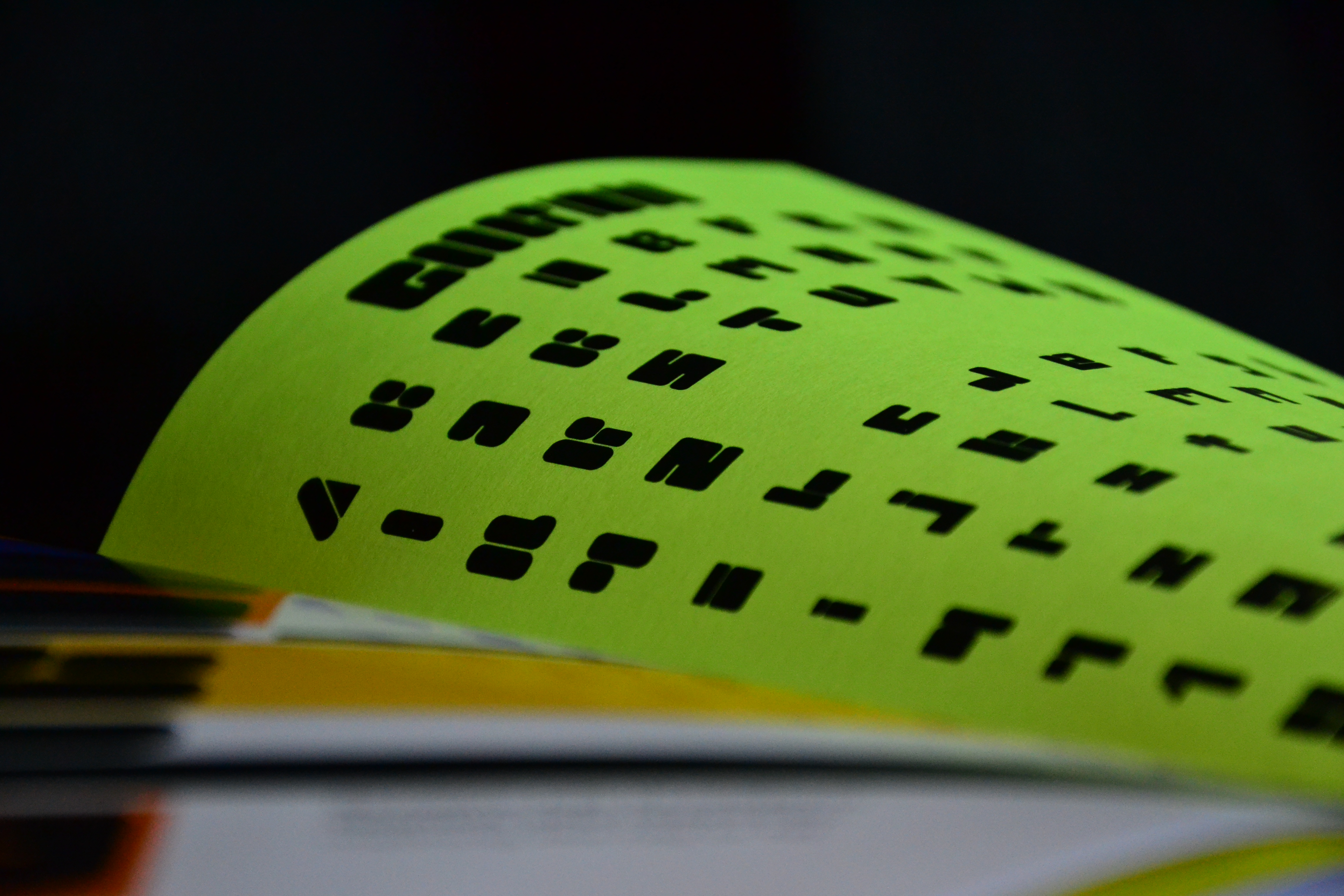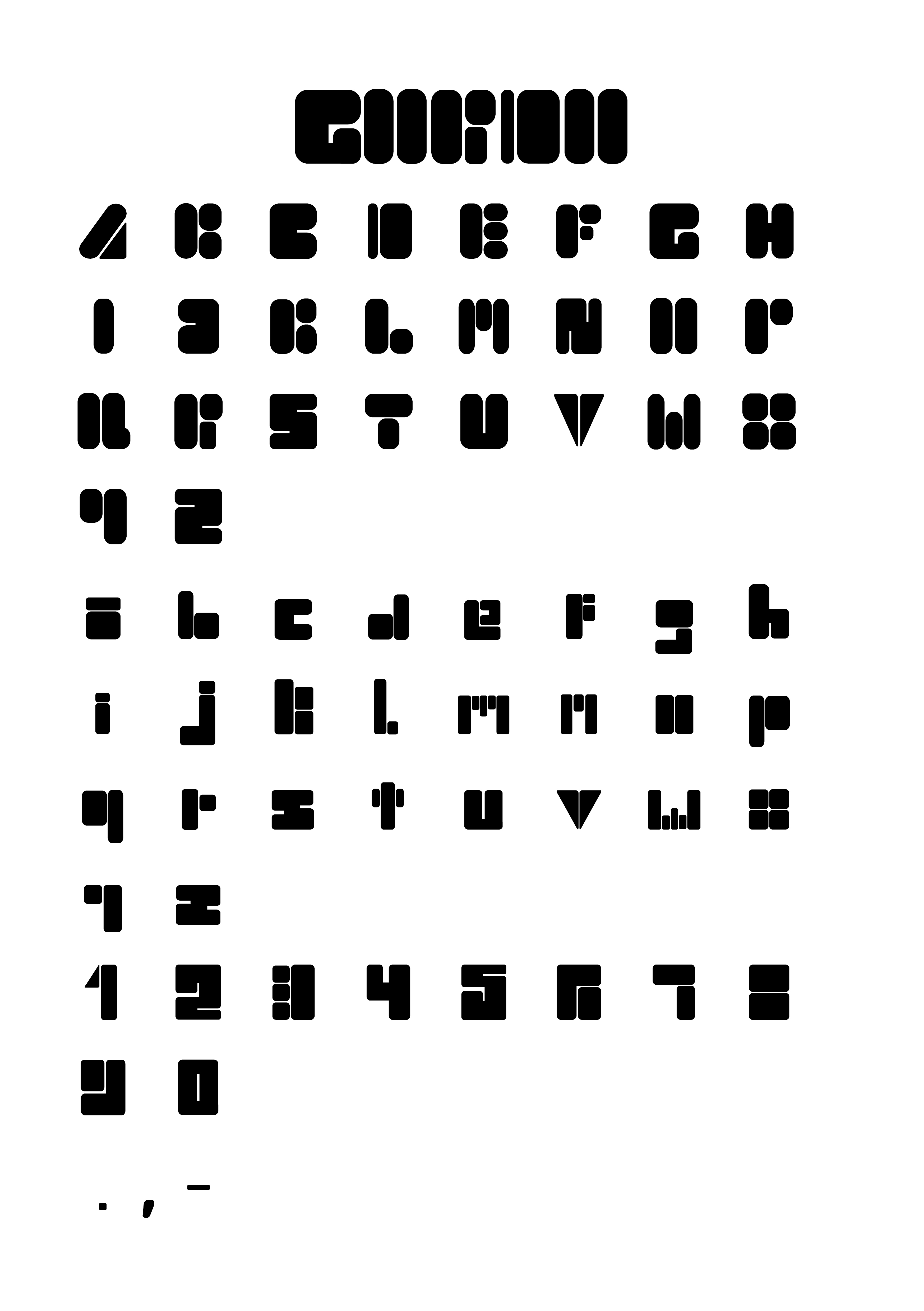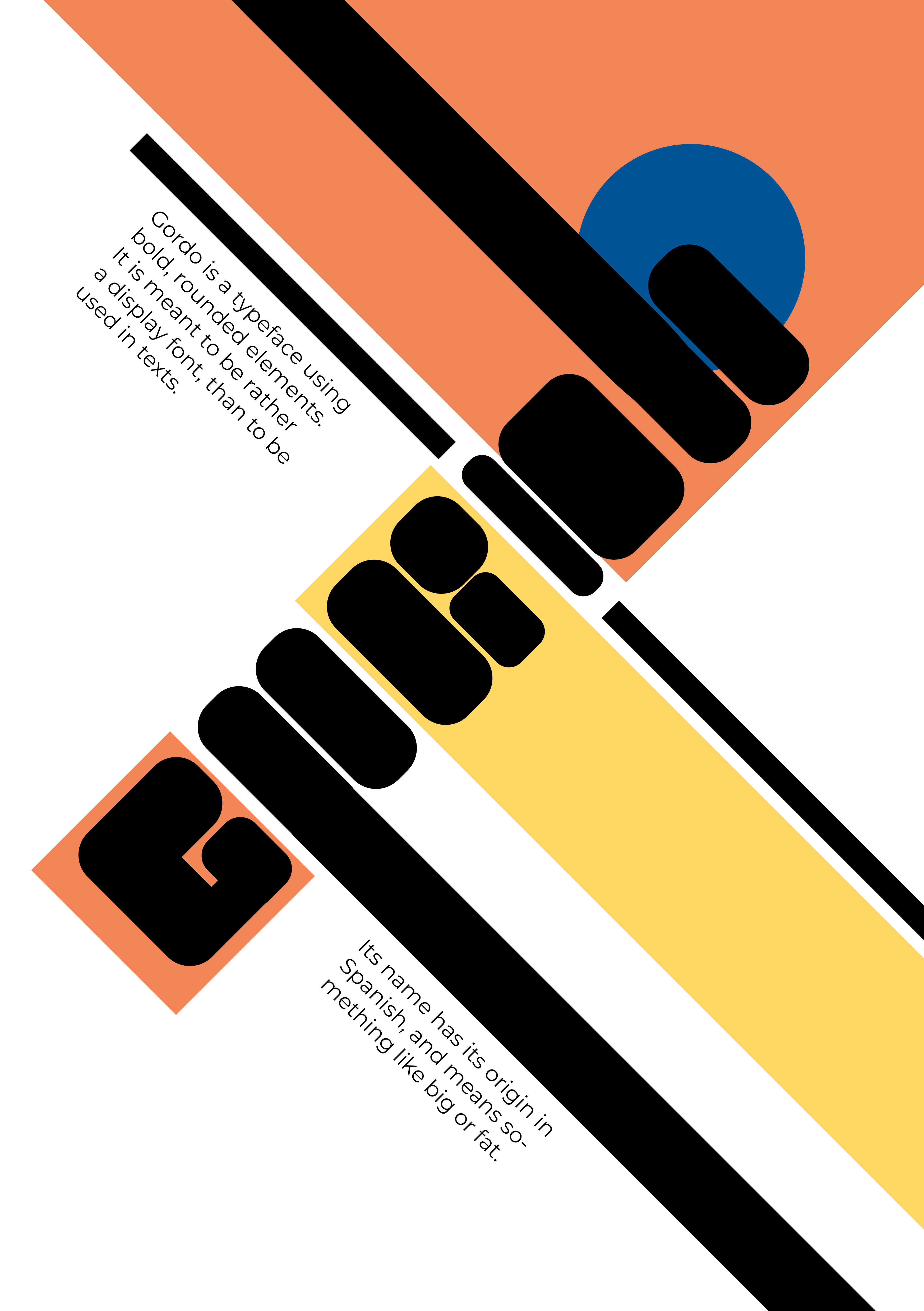 Zunächst wurden viele Entwürfe in einem Skizzenbuch erstellt, um im Anschluss die „Face-Font“ umzusetzen. Die Schrift besteht aus Gesichtern in den Formen der jeweiligen Buchstaben. Sie kann als Headline Schrift zum Beispiel für Plakate oder Kindermagazine verwendet werden. Als zweite Font wurde die „Gordo“ gestaltet. Diese besteht aus abgerundeten Rechtecken bzw. Quadraten und wirkt insgesamt sehr fett. Auch sie ist für Headlines gedacht.